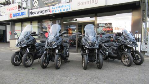 Der KYMCO CV3 575i ABS ist der erste dreirädrige Scooter in der KYMCO Flotte. Mit seinen zahlreichen Sicherheits- und Komfortmerkmalen ist der KYMCO CV3 eine großartige Alternative für alle, die die Wendigkeit eines Rollers im Stadtverkehr lieben und gleichzeitig die Freiheit und den Komfort eines Autos genießen möchten. Jetzt noch kraftvoller und komfortabler mit 574 ccm Hubraum.